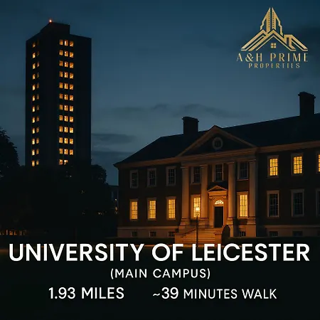 Najbliższe popularne zabytki to Park Wiktorii, 2 km, i Uniwersytet De Montfort, zaledwie 1 km stąd. Pomnik z wieżą zegarową przy Haymarket znajduje się w pobliżu od tego apartamentu. Hala kupiecka w Leicester leży w odległości 13-minutowego spaceru.